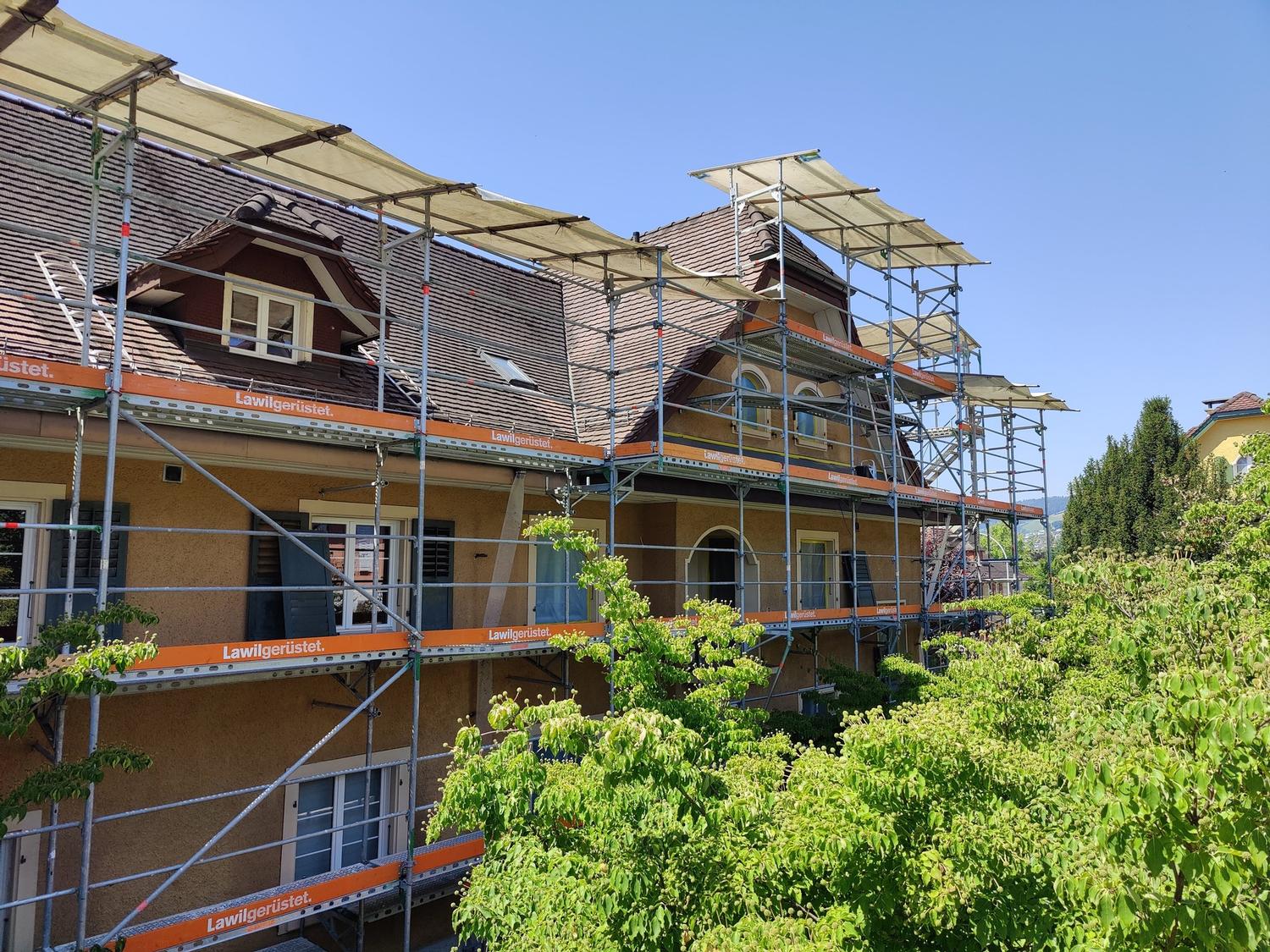 Bewohnt/Unbewohnt:• Das Bauprojekt wird im bewohnten Zustand ausgeführt und die Dächer werden über Gerüsttürme erschlossen